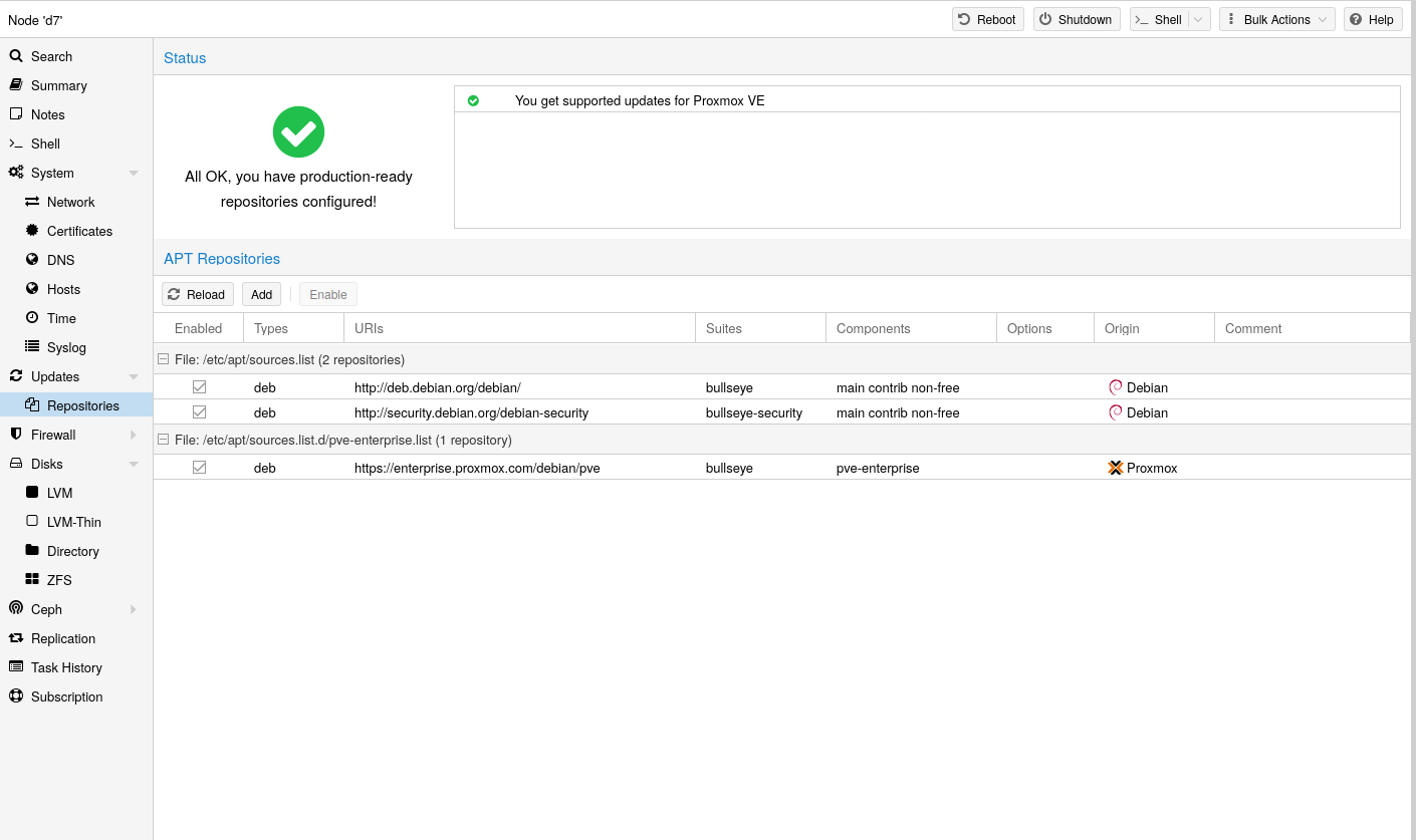 笔记: 您需要有效的 Debian 和 Proxmox 软件库,以便获取最新的安全更新、错误修复和新功能。