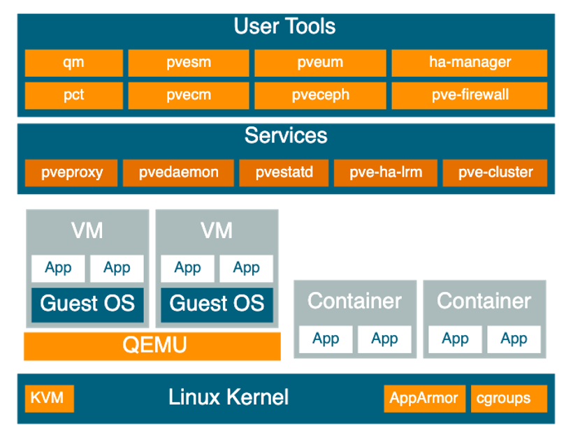 Proxmox VE 是一个集计算、存储与网络资源于一体的虚拟化平台,具备对高可用集群、备份与恢复机制以及灾难恢复功能的统一管理能力。其所有核心组件均基于软件定义架构构建,具备良好的兼容性与集成性。
